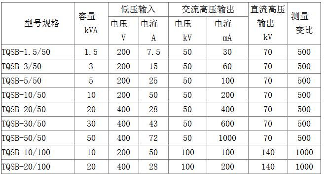 3、表格中"直流高壓輸出"一欄,為交直流兩用試驗變壓器的直流高壓輸出值;