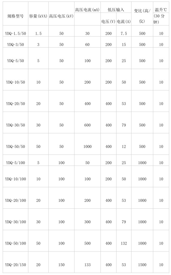 充氣式試驗(yàn)變壓器技術(shù)參數(shù)